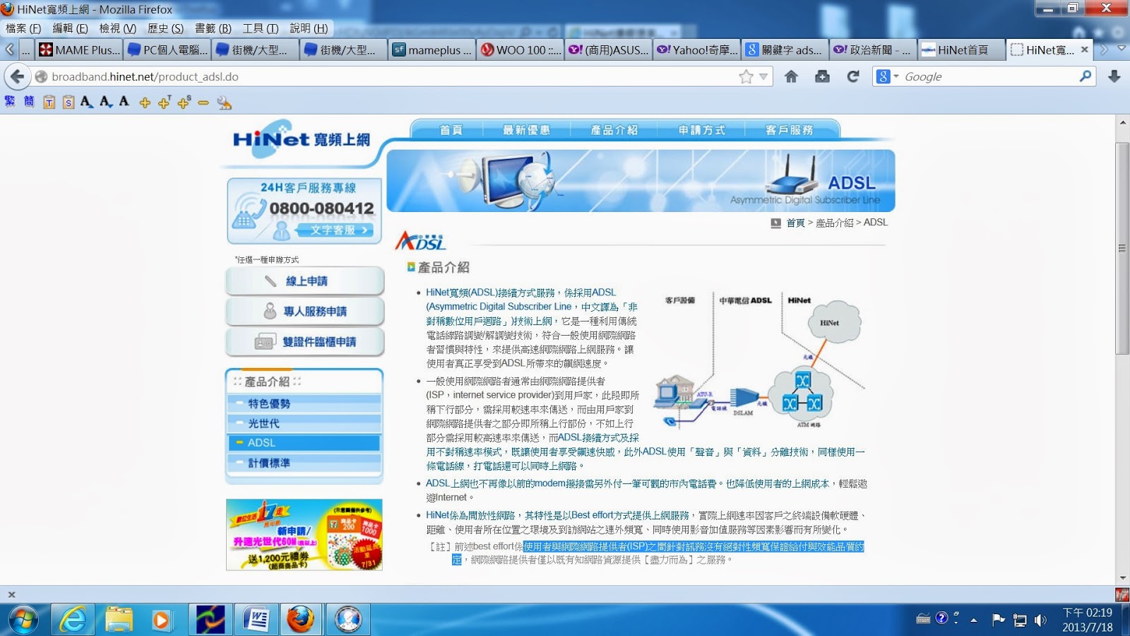 Chunghwa Telecom's ADSL service do not guarantee the band width. 中華電信的ADSL不保證頻寬