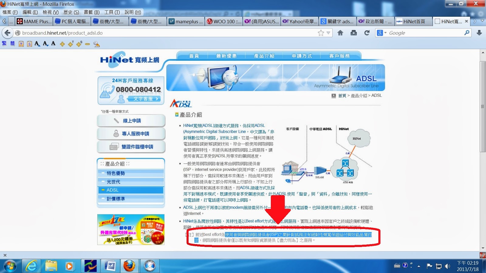中華電信的ADSL不保證頻寬。